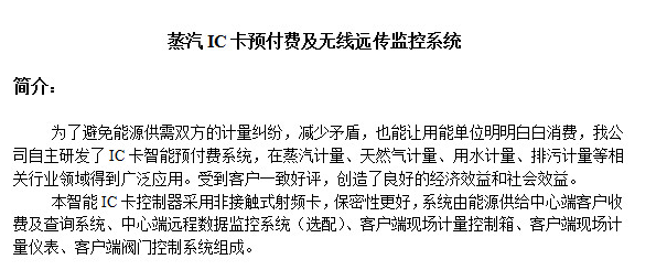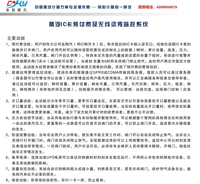 13、提示報警功能:汽、水量小于設(shè)定值控制箱會自動發(fā)出報警,提示用戶及時充值。